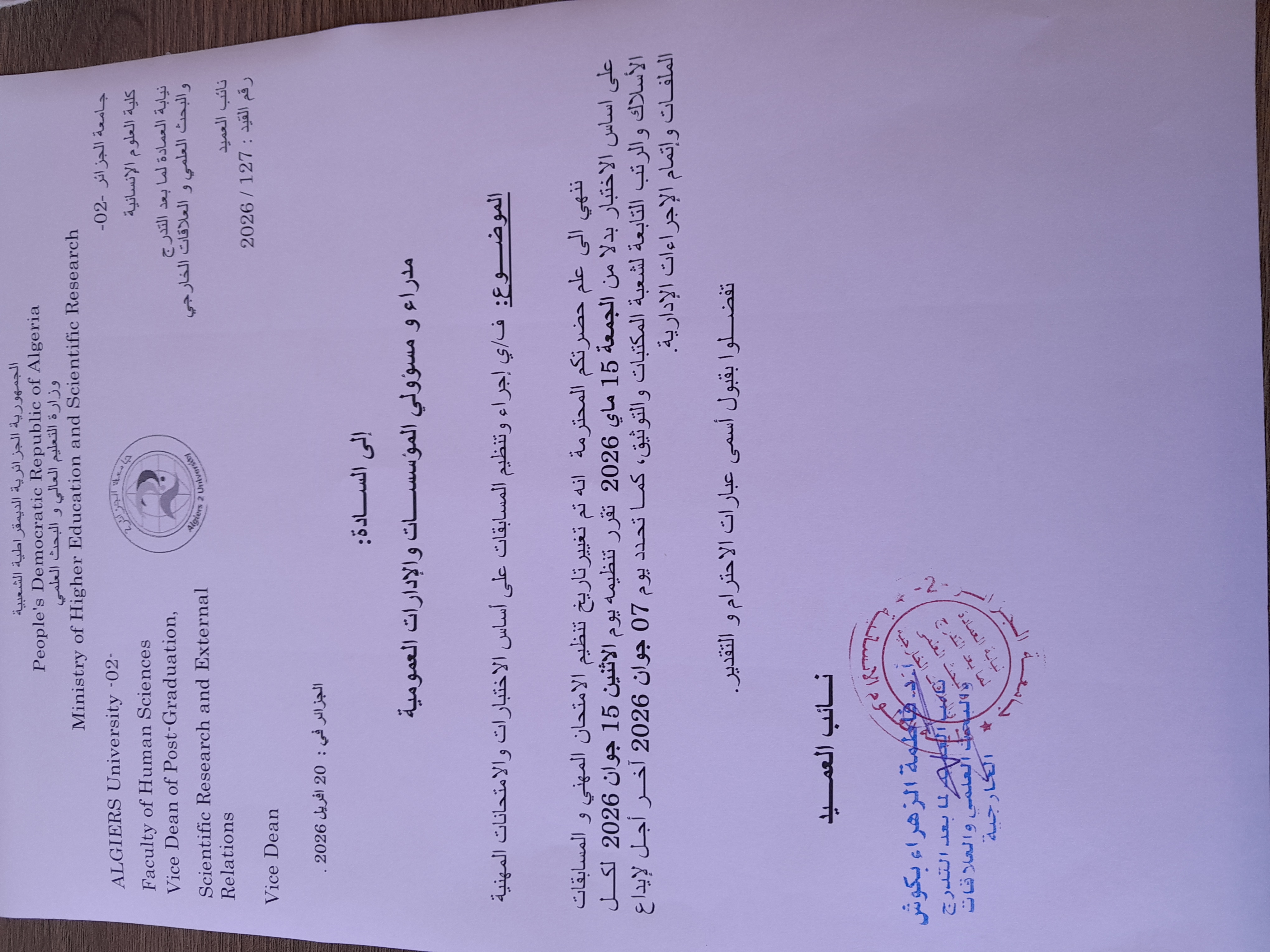 إعلان عن فتح مسابقات على أساس الامتحان المهني لفائدة موظفي كلية العلوم الإنسانية للسنة المالية 2026