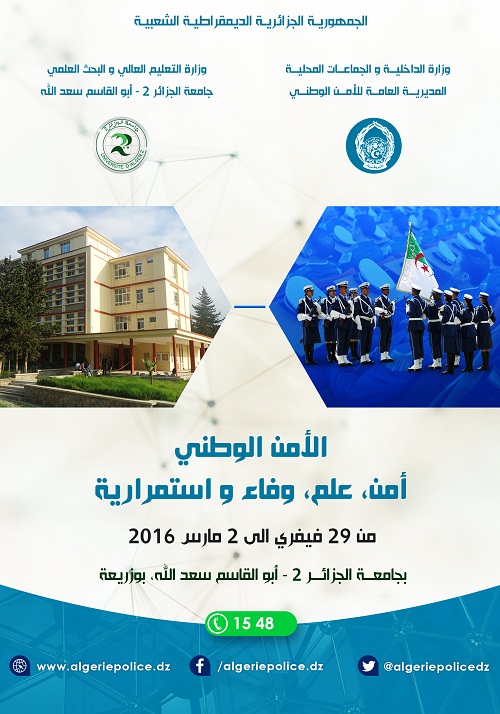 أمن، علم، وفاء واستمرارية من 29 فيفري إلى 2 مارس 2016 بجامعة الجزائر2-أبوالقاسم سعد الله ، بوزريعة